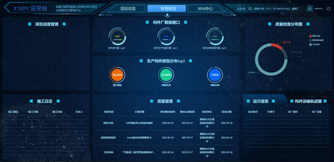 二、強化EPC前端精細化設計和智慧化管理的應用。項目全專業采用BIM正向設計,并在施工全過程應用BIM技術指導實施和糾偏,將關鍵節點施工工藝通過可視化形式交底,精準指導施工。同時,還全程應用了湖南省裝配式建筑全產業鏈智能建造平臺、智慧工地管理系統、智慧物料管理系統、智慧安全帽等信息化軟硬件,推動項目管理從線下走向線上,實現項目全過程信息化管理。