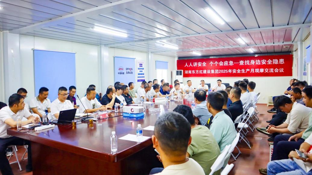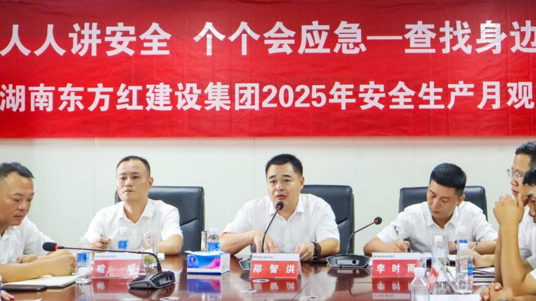 6月27日,湖南東方紅建設集團在大王山南片保障性住房三期(西地塊)項目部隆重舉行2025年安全生產月觀摩交流會議,建筑公司總經理鄭智洪、常務副總經理李時雨等領導以及公司項目負責人、關鍵崗位人員參加了本次活動,活動由建筑公司常務副總經理李時雨主持。