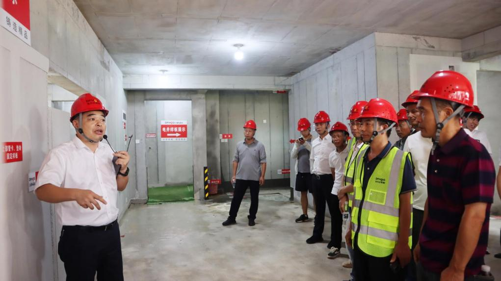 首先,所有參會人員在“夢想山悅和鳴15#、18#~25#、27#棟、南大門”和“大王山南片保障性住房三期項目”進行了現場觀摩活動,各參會人員分別對項目安全文明施工、智慧工地應用、實體質量樣板、現場綠色施工做法等多個展示內容進行了深入細致的觀摩,對項目現場標準化管理及數字化應用進行了充分討論。